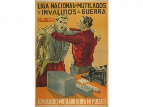 (1937 ca.). CARTEL. (GUERRA CIVIL Y REPÚBLICA). LIGA NACIONAL DE MUTILADOS E I. Litografía. 100 x 70 cm (40 x 27 in). A-. Entelado.