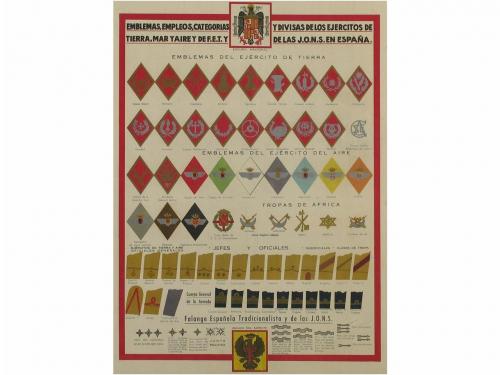 (1940 ca.). CARTEL. (GUERRA CIVIL Y REPÚBLICA). FALANGE ESPAÑOLA. EMBLEMAS DEL EJERCITO DE TIERRA. Litografía. 25 x 18 cm (10 x 7,2 in). B+. Entelado.