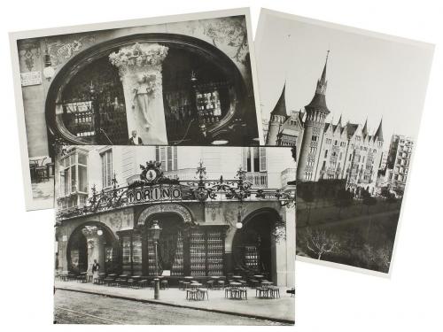 1940 ca. FOTOGRAFÍA. LOTE DE 9 FOTOGRAFÍAS DE FACHADAS DE EDIFICIOS DE PUIG I CADAFALCH. 18 x 24 cm. Todas llevan sello húmedo de "institut Amatller d'Art Hispano", llevan anotaciones a lápiz al dorso. Alguno de los edificios reproducidos hoy ya no existen.
