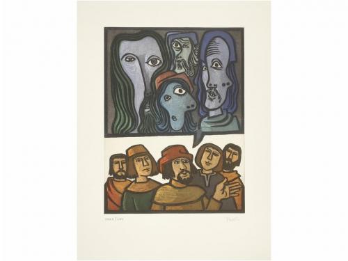 2000-2005. LIBRO. (BIBLIOFILIA). EL DECAMERON. Bayona: Liber Ediciones, 2000-2005. Diez vol. en folio mayor. I: Un dibujo original firmado por Perellón y dedicado a D. Alberto Marín + 108 p. + 12 aguafuertes. II: Un dibujo original firmado por Perellón y dedicado + 160 p. + 12 aguafuertes. III: Un dibujo original firmado por Perellón y dedicado + 128 p + 10 aguafuertes. IV: Un dibujo original firmado por Perellón y dedicado + 116 p. + 12 grabados. V: Un dibujo original firmado por Perellón y dedicado + 116 p. + 12 grabados. VI: Un dibujo original firmado por Perellón y dedicado + 78 p. + 10 grabados. VII: Un dibujo original firmado por Perellón y dedicado + 103 p. + 12 grabados. VIII: Un dibujo original firmado por Perellón y dedicado + 140 p. + 10 grabados. IX: Un dibujo original firmado por Perellón y dedicado + 88 p. +12 serigrafías. X: Un dibujo original firmado por Perellón y dedicado + 148 p. + 12 grabados. Además todos van ilustr. en el texto con viñetas, capitales y culs-de-lamp por el mismo artista. Cada vol. en rama, en papel de hilo con filigrana Guarro y dentro de una caja de piel y tela. Ejemplar numerado en romanos de la tirada de LXII que incluye todos los grabados a color y a un solo color, de un total de la edición fue de 314. El ejemplar que ofrecemos lleva además en cada tomo un dibujo original del artista dedicado al propietario, en total diez dibujos originales, privilegio que en la justificción de la tirada se especifica para los doce ejemplares marcados con letras de la A a la L. Lleva además un tríptico de la edición y una carta en la que se informa de que la obra recibió el premio 2005 de Liber Ediciones como mejor libro Editado. La nota, firmada por Juan José Izquierdo (editor), dice que esta edición es prácticamente la única que presenta los 100 cuentos completos de Boccaccio ilustrados en su totalidad. Es probablemente la más completa y mejor edición del Decamerón de todos los tiempos, pues además presenta un recorrido impresionante por las distintas técnicas de dibujo y estampación (litografía, aguafuerte, serigrafía, xilografía, etc.), una verdadera obra maestra.