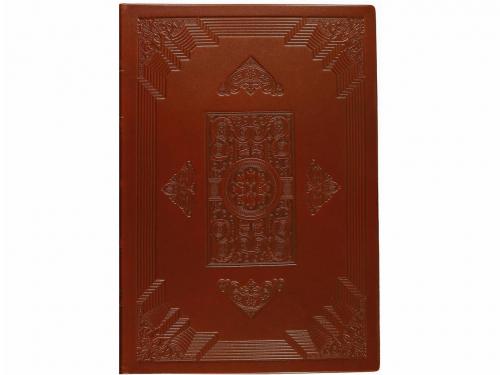 1997. LIBRO. (FACSÍMIL). VASALII, ANDREAE:. DE HUMANI CORPORIS FABRICA. LIBRI SEPTEM. Barcelona: EBRISA, 1997. Folio mayor. Aprox. 900 h. con el facsímil de la obra impresa en Basilea ex Officina Oiannis Poprini en 1540. Bella enc. en plena piel gofrada y presentada en una petaca en media piel. Edición numerada y limitada a 980 ejemplares. Con el libro de estudio de la mano de Avelino Domínguez y Florentino Fernández. Folio mayor. 490 p. Enc. media piel.