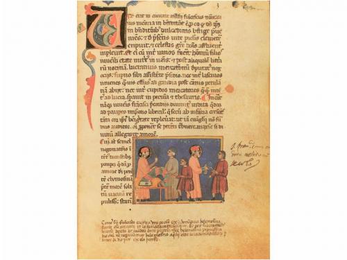 2001. LIBRO. (FACSÍMIL). LEGENDA MAIOR de San Buenaventura. Madrid: Ars Magna, 2001. 4º menor. 100 h. aprox. Profus. iluminado. Facsímil cuyo original se conserva en el Archivo del Convento Franciscano Cardenal Cisneros de Madrid. Enc. en plena piel con cierre metálico, presentado en caja de piel. Ejemplar numerado de la edición de 500, con acta notarial. Acompañado del libro de estudios.