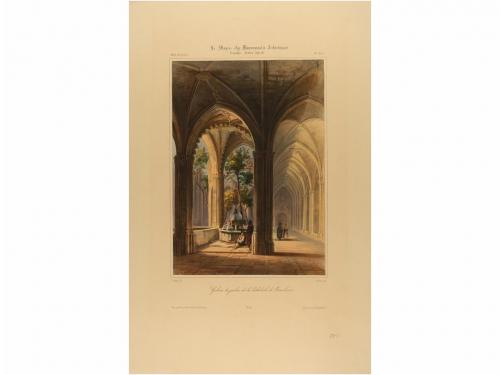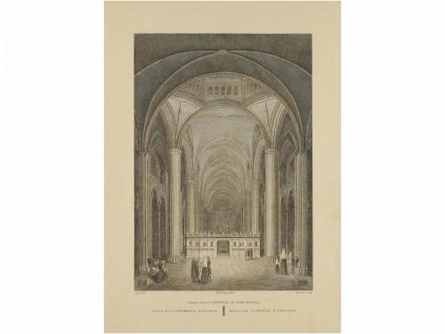 s. XIX. GRABADO. (LOTE). LOTE DE 7 GRABADOS DEL INTERIOR DE LA CATEDRAL DE BARCELONA. Lote con imágenes grabadas del interior de la catedral de Barcelona, tanto de la nave principal como del coro y el claustro. Alguna con puntos de óxido.