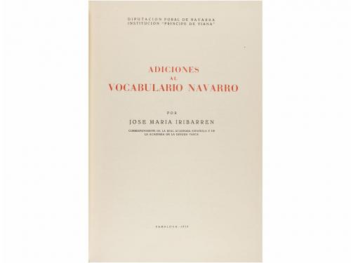 1958-1971. LIBRO. (NAVARRA-HISTORIA). IRIBARREN, JOSÉ MARÍA:. ESTAMPAS TUDELANAS. Pamplona: Ed. Aranzadi, 1971. 4º menor. 63 p. Enc en plena piel reciente, hilos dorados en ambos planos, con las cubiertas originales. [Más:] ID. ADICIONES AL VOCABULARIO NAVARRO. Pamplona: Ed. Gomez, 1958. 4º menor. 213 p. + 1 h. Enc. en plena piel reciente, hilos dorados en ambos planos, nervios, tejuelo, conserva las cubiertas originales. [Más:] DÍAZ BRAVO, JOSÉ:. MEMORIAS HISTÓRICAS DE TUDELA. Pamplona: Imp. Excma. diputación de Navarra, 1948. 4º mayor. 422 p. Ilustr. con lám. fuera del texto. Enc. en media piel, tejuelo. Dedicatoria de José Ramón Castro a Eduardo Sainz y Alcazar.