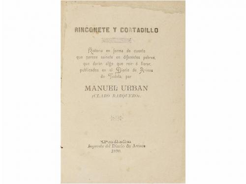 1890. LIBRO. (NAVARRA-LITERATURA). URBAN, MANUEL:. RINCONETE Y CORTADILLO. HISTORIA EN FORMA DE CUENTO QUE PARECE SAINETE... Tudela: Imp. Diario de avisos, 1890. 8º. 94 p. Enc. en reciente media piel, puntas.