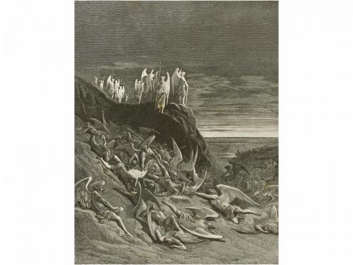 1886. LIBRO. (BIBLIOFILIA). MILTON, JOHN:. EL PARAISO PERDIDO. Trad. Cayetano Rosell. Ilustr. Gustavo Doré. Trad. Cayetano Rosell. Barcelona: Montaner y Simón edit., 1886. Folio mayor. LII + 281 p. + 2 h. Ilustr. con 50 grabados por Gustavo Doré fuera del texto. Portada remarginada, primeras p. parcialmente desprendidas, mínimas restauraciones. Enc. en media piel ligeramente rozada, tejuelos, nervios.