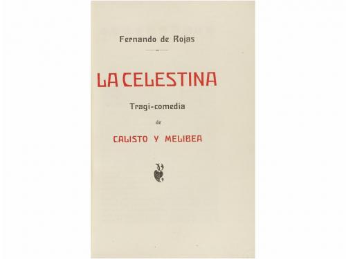 1909. LIBRO. (LITERATURA-BIBLIOFILIA). ROJAS, FERNANDO DE:. LA CELESTINA TRAGI-COMEDIA DE CALIXTO Y MELIBEA. Barcelona: Ed. Antonio Palau, 1909. 8º menor. 202 p. + 2 h. Papel de hilo. Ejemplar 9/100. Enc. en pleno pergamino firmada por BRUGALLA 1939; conserva la rústica original.