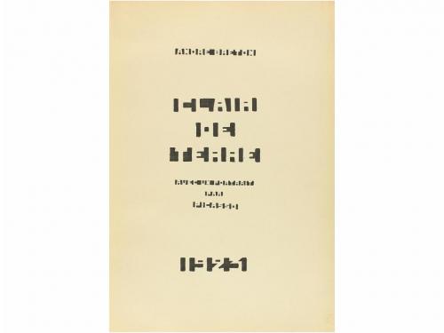 1923. LIBRO. (SURREALISMO). BRETON, ANDRÉ:. CLAIR DE TERRE. AVEC UN PORTRAIT PAR PICASSO. Paris: Presses du Montparnasse, 1923. 4º mayor. 78 p. y un retrato por Picasso. Edición numerada de 150 ejemplares. Rústica original, algo sucia. Aquí A. Breton recoge los textos que había escrito entre 1921 y 1922, publicados por separado en diferentes revistas, reunidos aquí por primera vez en una sola obra. La tipografía con la iluminación invertida, letras blancas sobre fondo cuadrado negro, ilustra de forma muy gráfica la intención de transformar también la poesía en sí. PRIMERA EDICIÓN.