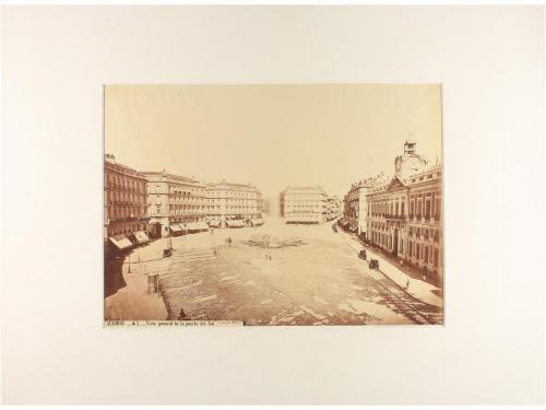 1865 ca. FOTOGRAFÍA. (MADRID). LAURENT, J.:. MADRID 41. VISTA PUERTA DEL SOL. Vista general de la puerta del Sol, antes de 1865. Papel albuminado, 24,5 x 34 cm. Firmada en el negativo. Tiraje de época. Reproducida en: Historia de la fotografía en España, desde sus orígenes hasta 1900, Ediciones El Viso, Madrid, 1980, p. 99. J. Laurent, Ministerio de Cultura, Madrid, 1983, p. 29.