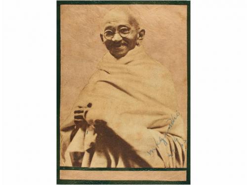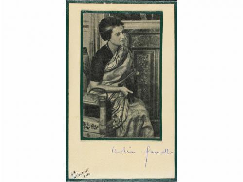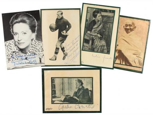 s. XX. FOTOGRAFÍA. COLECCIÓN DE FOTOGRAFÍAS AUTÓGRAFAS DE PERSONAJES DESTACADOS. El lote incluye fotografías de: DEBORAH KERR: DEDICATORIA con firma autógrafa; INDIRA GANDHI, firmada por ella y acompañada de una carta de su secretario personal fechada en 1966; MAHATMA GANDHI: con la firma del líder pacifista e impulsor de la independencia de la India; AGATHA CHRISTIE; ÁNGLEL GUIMERÀ y RICARDO ZAMORA.