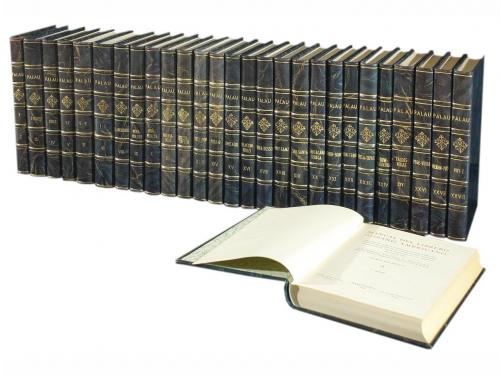 1948-1977. LIBRO. (BIBLIOGRAFÍA). PALAU Y DULCET, ANTONIO:. MANUAL DEL LIBRERO HISPANOAMERICANO. Bibliografía general española e hispanoamericana desde la invención de la imprenta hasta nuestro tiempos con el valor comercial de los impresos descritos. Barcelona [and Oxford]: Llibreria Palau [The Dolphin Book], 1948 - 1977. 28 vol. en 4º mayor. La mejor bibliografía Española e Iberoamericana publicada. Describe 381897 obras, con sus comentarios y tasaciones. La información que contiene esta bibliografía aún no ha sido digitalizada, por lo cual su consulta continúa siendo de referencia. 28 vol. muy bien enc. en plena piel, nervios. Enc. muy sólida, ideal para el uso intensivo que este manual debe tener.