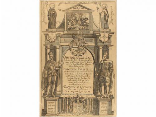 1629. LIBRO. (MILITARIA). CARO DE TORRES, FRANCISCO:. HISTORIA DE LAS ORDENES MILITARES DE SANTIAGO, CALATRAVA, Y ALCANTARA DESDE SU FUNDACION HASTA EL REY DON FELIPE SEGUNDO ADMINISTRADOR PERPETUO DELLAS. Madrid: Iuan Gonzáles, 1629. 4º mayor. 15 h. + 252 fol. Texto a dos columnas. Frontis grabado por A. de Popona. Algún antiguo subrayado. Enc. en pergamino rígido, tejuelo. PRIMERA EDICIÓN de éste interesante libro sobre heráldica y genealogía en Perú, México y Chile. De forma muy didáctica estudia las órdenes españolas durante el reinado de Felipe II. Actualmente es un valioso documento sobre la historia de la Conquista de Amércia. Caro de Torres era hijo de un conquistador y tenía información de primera mano puesto que después de combatir en Bélgica e Italia viajó a Perú con el nuevo virrey de Perú, Conde de Villar. Posteriormente fue enviado con las tropas a Chile para ayudar a Alonso de Sotomayor, al que siguió hasta Panamá. Al final de su vida fue nombrado miembro de la Orden de Santiago. Palau: 44869. Sabin 10951. Medina, Biblioteca Hispano-Chilena, 70, páginas 280-299. No en Hispanic Society N.Y.