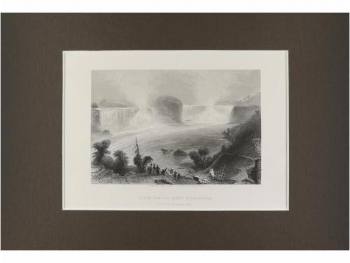 s. XIX. GRABADO. 7 GRABADOS DE CIUDADES NORTEAMERICANAS. Diferentes tamaños, todos presentados en paspartú. Las ciudades representadas están en pleno crecimiento. Incluye: Jefferson City (a orillas del río Missouri), Philadelphia, Fort Snelling, Hudson (Ansicht der stadt Hudson), Washington (Die Hauptfrone des Capitols), vista de Philadelphia (Die Schönen Berggärten), Der Fall des Niagara. Muy limpios.