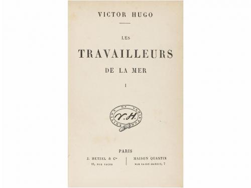 1900 ca. LIBRO. (LITERATURA). HUGO, VICTOR:. LES TRAVAILLEURS DE LA MER. Paris: J. Hetzel, s.a. 2 vol. 8º. I: 2 h. + 312 p. II: 2 h. + 259 p. Dos vol. enc. en media piel, doble tejuelo, nervios. Bonita edición.