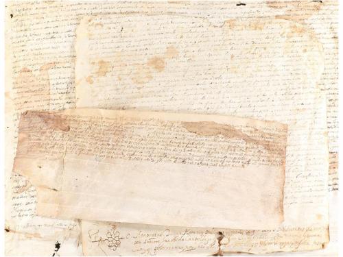 1603, 1611 y 1619. MANUSCRITO. LOTE DE 3 PERGAMINOS FIRMADOS ANTE NOTARIO EN GIRONA. El primero de ellos es un ápoca de pago de 10 libras en moneda barcelonesa como dote de Magdalena, realizada por Joan Costa, su marido, sastre y vecino de Pont Major, de la villa de Sant Feliu de Girona. El segundo firmado el 2 de junio de 1611, son los capítulos matrimoniales entre Antoni Mir y Rafaela Llach. Por último y también firmado en Girona ante el notario Rafel Albert el 28 de julio de 1619, es una cabrevación de la masía Mir, en Sant Martí de la Mota.