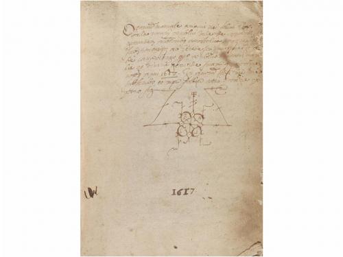 1617-1618. MANUSCRITO. MANUSCRITO NOTARIAL DE FELIU BATLLE, NOTARIO DE GIRONA. Manuscrito en 4º menor enc. en pergamino de época. Manuscrito todo sobre papel. Manuscrito todo de la misma mano que recoge los documentos de la notaría de Feliu Batlle. Primeras y últimas hojas con faltas y cercos de humedad.