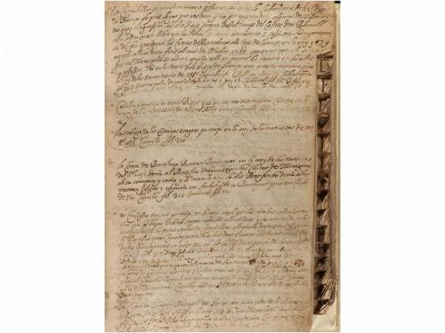 s. XVIII. LIBRO. (MANUSCRITO-HISTORIA CATALUNYA). LIBRO MANUSCRITO DE NOTICIAS Y HECHOS HISTÓRICOS. Libro manuscrito en catalán. Folio. Realizado por un mismo puño en diferentes momentos. Escrito en recto y verso, más de 200 p., algunas en blanco. Estudio histórico o cronología de hechos, la mayoría sobre Catalunya, Barcelona y Cardona, organizadas por orden alfabético y cronológico. Muchas de las notas con referéncias bibliográficas. Enc. en medio pergamino moderno. Preferible examinar.