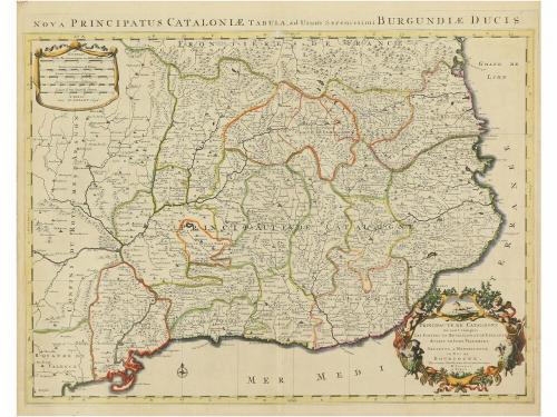 MAPA. (CATALUNYA). [SANSON: MORTIER:]. Paris: Chez H. Iaillot, 1696. 48,5 x 62 cm huella y 53 x 62,5 cm papel. Mapa grabado al cobre. Límites y cartelas coloreados. Colomer 17/II.