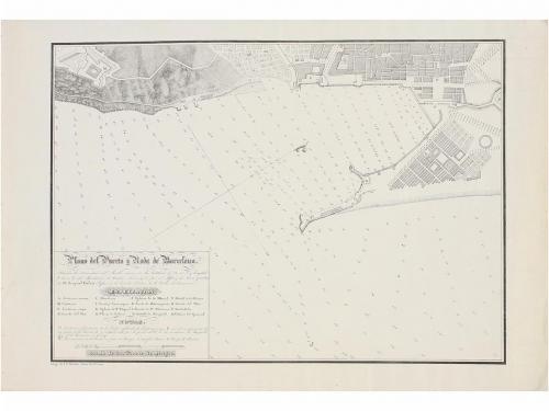1850 ca. MAPA. (BARCELONA). CALVET, EZEQUIEL:. PLANO DEL PUERTO Y RADA DE BARCELONA. [Barcelona]: Litoga. de J. E. Monfort. 44 x 63 cm.