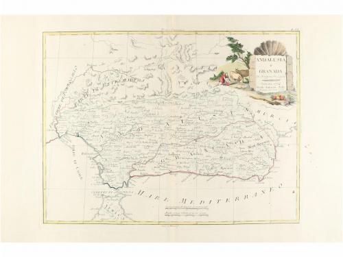 1776. MAPA. (ANDALUCIA). ZATTA, ANTONIO:. ANDALUSIA E GRANADA. Venezia: presso Antonio Zatta, 1776. Mapa grabado al cobre. Papel: 38 x 53 cm. Huella: 30 x 39,5 cm. Límites y cartela iluminadas a mano.
