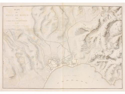 1808. MAPA. (ROSAS). [BELMAS:]. PLAN DI SIÉGE DE ROSES. PAR L'ARMÉE FRANÇAISE DE CATALOGNE EN 1808. 68 x 95 cm. Extraído de "Journaux des Sieges faits et soutenus par les Francais dans la Peninsule de 1807 a 1814" . Ligera señal de óxido.