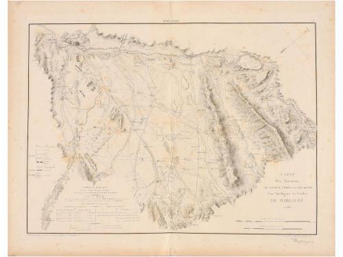 1820 ca. MAPA. (LLEIDA). COLLIN, E.:. CARTE DES ENVIRONS DE LERIDA, TARREGA ET BALBAGUER POUR L'INTELLIGENCE DU COMBAT DE MARGALEF EN 1810. Grabado al cobre por E. Collin sobre diseños de la oficina del estado mayor. 46 x 61 cm huella 52,5 x 68 cm papel. Señal de óxido.