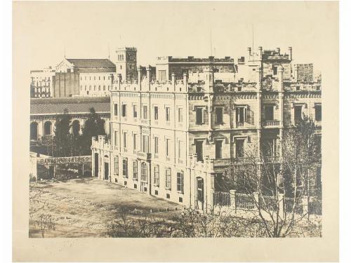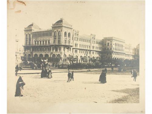 1920 ca. FOTOGRAFÍA. (BARCELONA). 2 REPRODUCCIONES DE FOTOGRAFÍAS DE LA EXPOSICIÓN INTERNACIONAL DE 1888. 33 x 40 cm. Una es de la Plaza Catalunya y la otra del Hotel Internacional en el Paseo Colón.