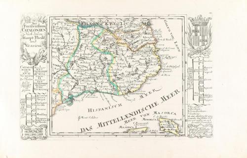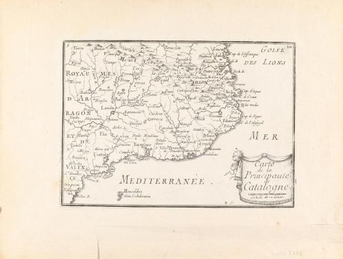 1653 ca-1711. MAPA. (CATALUNYA). DR. [BEAULIEU:]; BÖDENEHR:. LOTE DE DOS MAPAS DE CATALUNYA. Conjunto de dos mapas calcográficos: CARTE DE LA PRINCIPAUTE DE CATALOGNE. 19 x 24 cm. Huella: 11,5 x 16,5 cm. Perteneciente a la obra "Les Plans et Profils des principals villes et lieux considerables de la Principauté de Catalogne...". Colomer 19-II. [Más:] DAS FURTHENTHUM CATALONIEN. Grabado 12 de un antiguo libro alemán editado durante la guerra de sucesión. Límites iluminados. Grabado al cobre Huella: 16 x 24 cm. Papel: 19 x 32 cm. Colomer 40.