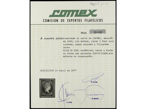 ** ESPAÑA. Ed. 41. 1 real azul verdoso. PIEZA DE LUJO. Cert. COMEX.