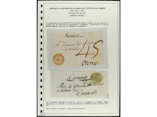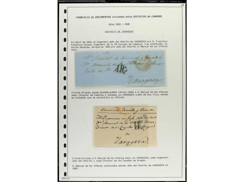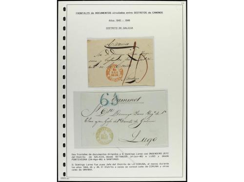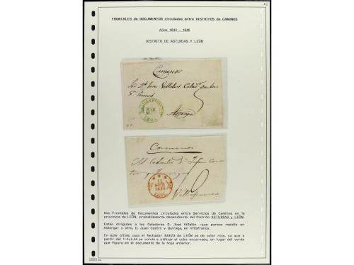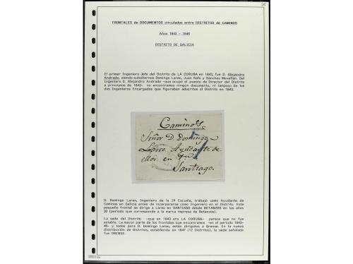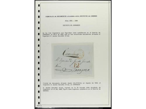 ESPAÑA: PREFILATELIA. Colección de cartas de CAMINOS (Ingenieros). 15 hojas de exposición con descripciones procedentes de la colección de Antonio Valdés.