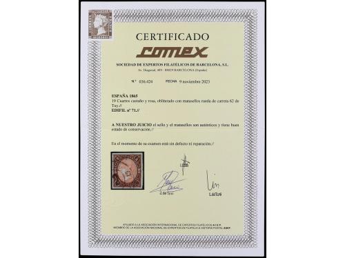 ° ESPAÑA. Ed. 71. 19 cuartos castaño y rosa, mat. R.C. 62 de TUY. Color muy intenso. PIEZA DE LUJO. Cert. COMEX. Cat. 1.000€.