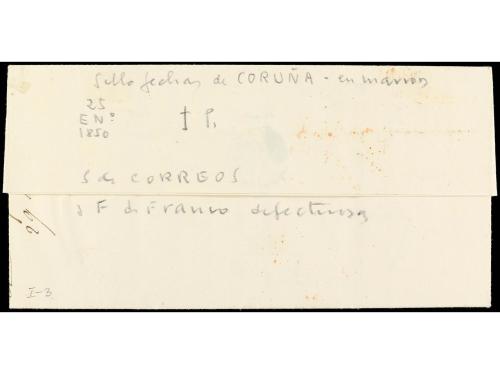 ESPAÑA. Ed. 1. 1850. CORUÑA a MADRID. 6 cuartos negro, pl. I tipo 3, mat. fechador CORUÑA/GALICIA.