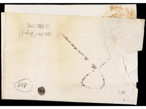 ESPAÑA: PREFILATELIA. 1796. BORJA a CALAF. Marca ARA/GON (nº 2) en tinta de escribir.