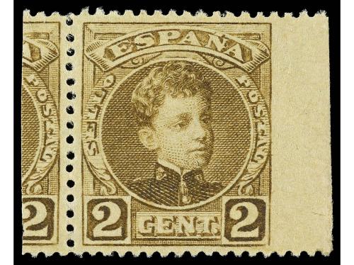 * ESPAÑA. Ed. 241smd. 2 cts. sepia SIN DENTAR MARGEN DERECHO.