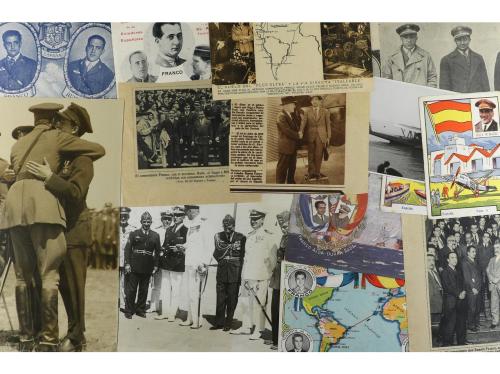 ESPAÑA. 1926. RAID AÉREO ESPAÑA a ARGENTINA a cargo del Comandante Franco, Teniente de Navío Duran, Capitán de Artillería Ruiz de Alda y el mecánico Rada en el avión "Plus Ultra". Conjunto de tarjetas postales, documentos y fotografías alusivas a este importante hito de la Aviación Española. MUY INTERESANTE.
