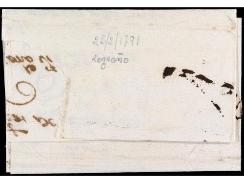 ESPAÑA: PREFILATELIA. 1791. LOGROÑO a FORONDA. Marca RIOXA (nº 5). Fecha inédita y muy temprana.