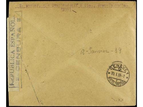 ESPAÑA. Ed. 783, 735, 739 (4). 1939. VALENCIA a SUIZA. Precioso franqueo.