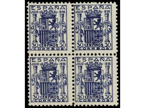 ** ESPAÑA. Ed. 801 (4). 30 cts. azul. Bloque de cuatro, habi