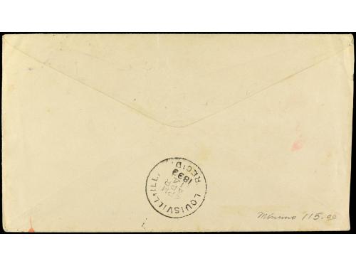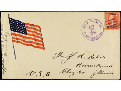 Δ CUBA. 1899. BUENAVISTA a U.S.A. Circulada con sellos USA hablitado para 2 ctvos. Cuba con mat. MIL.P.STA. Nº 26/BUENAVISTA, CUBA.