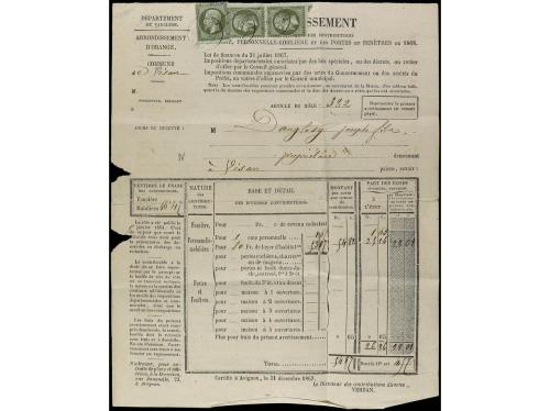 ✉ FRANCIA. Yv. 19 (3). 1868. Hoja de contribución de finanza ✉ FRANCIA. Yv. 19 (3). 1868. Hoja de contribución de finanza