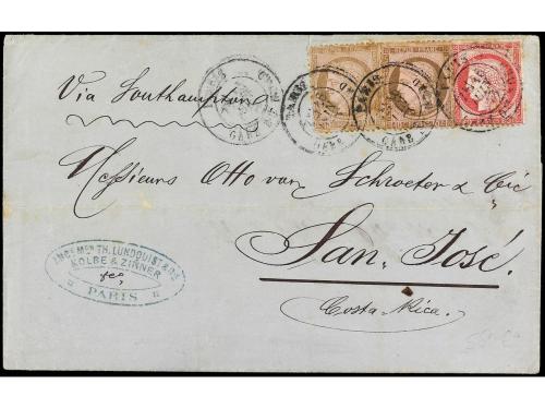 ✉ FRANCIA. Yv. 54 (2), 57. 1873. PARÍS a SAN JOSE (Costa Ric ✉ FRANCIA. Yv. 54 (2), 57. 1873. PARÍS a SAN JOSE (Costa Ric
