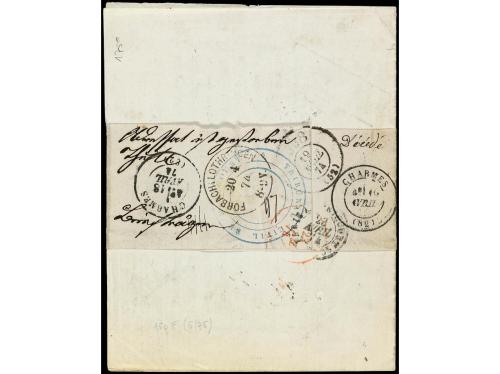 FRANCIA. Yv. 60 (3). 1874. Impreso circulado de MIRECOURT a ALEMANIA y devuelto al remitente con sellos de 25 cts. azul (2) por correo certificado.