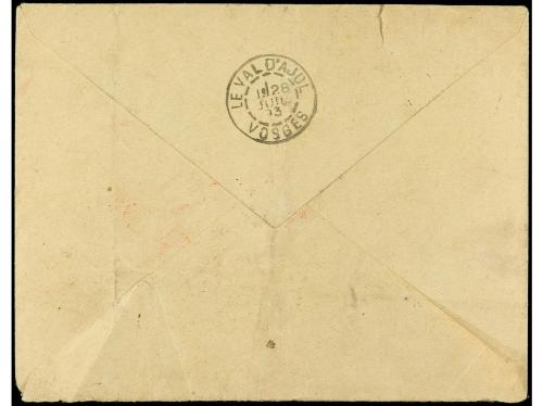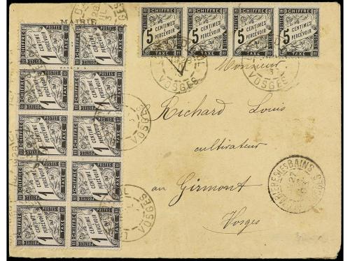 FRANCIA. 1893. Circulada a GIRMONT tasada a la llegada con 30 cts. pagados con sellos de Tasa de 1 cto. negro (10) y 5 cts. negro (3).