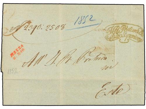 ITALIA ANTIGUOS ESTADOS: LOMBARDO-VENECIA. 1852. MASSA a ESTE. Marca de Franquicia y MASSA / 8 MAG. en rojo (SI 9p.).