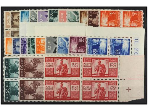 ** ITALIA. Sa. 543/65. 1945. SERIE COMPLETA en bloques de cuatro. LUJO .