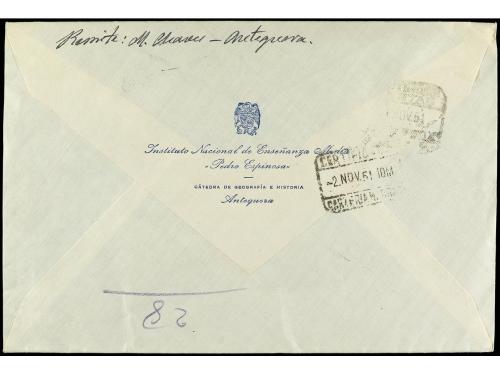 ✉ ESPAÑA. Ed. 1076. 1951. ANTEQUERA a MADRID. 75 cts. azul y ✉ ESPAÑA. Ed. 1076. 1951. ANTEQUERA a MADRID. 75 cts. azul y