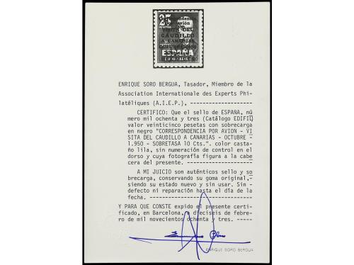 ** ESPAÑA. Ed. 1083. CANARIAS AVIÓN SIN NÚMERO. Muy bien centrado para la emisión. Cert. SORO.