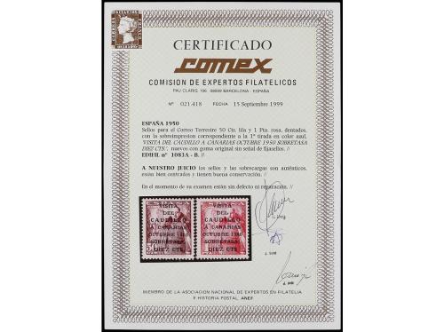 ** ESPAÑA. Ed. 1083A/B. CANARIAS CORREO I TIRADA. 2 valores. Cert. COMEX. Cat. 590€.
