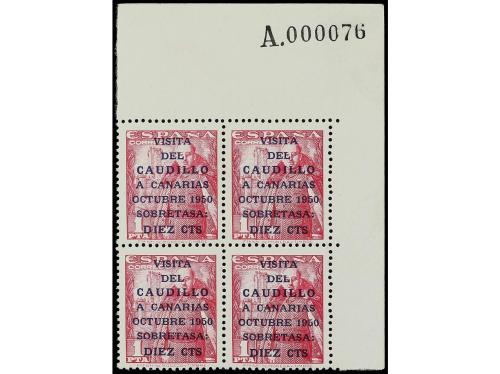 ** ESPAÑA. Ed. 1083A/B. CANARIAS CORREO. I TIRADA. Serie completa en bloques de cuatro. LUJO. Cert. CEM.
