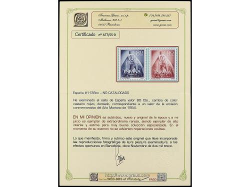 ** ESPAÑA. Ed. 1138cc. VÍRGENES. 80 cts. rosa carmín CAMBIO DE COLOR. RARÍSIMO. Cert. GRAUS.